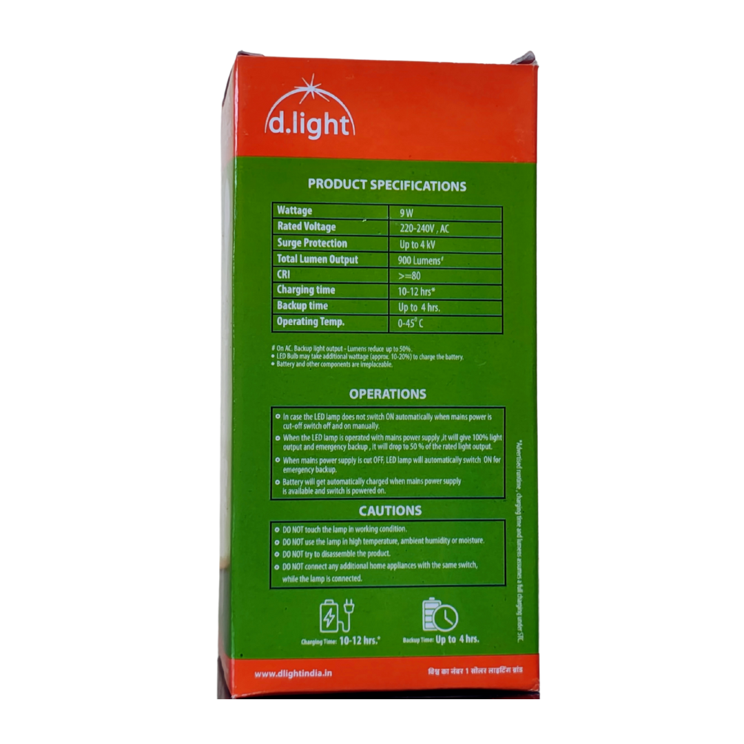 Stay illuminated during power outages with the D. Light Bright Rechargeable Emergency Inverter LED Bulb. This 9W LED bulb provides a cool white light and fits standard B22 sockets. Designed for reliability, it offers up to 4 hours of backup power, ensuring your medium-sized rooms remain lit. The bulb features instant power backup, automatically charging when the main power is on. The integrated Battery Management System (BMS) protects the battery, extending its lifespan. Enjoy long-lasting, dependable emergency lighting with a 2-year warranty.”